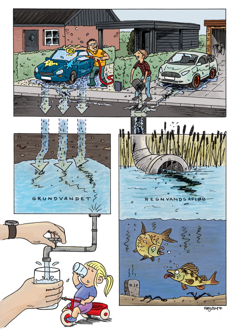 Hvis du vasker bil i indkørslen eller ved kantstenen, vil det snavsede spildevand fra bilvasken ende i naturen, når det løber direkte ud på jorden eller i regnvandskloakken