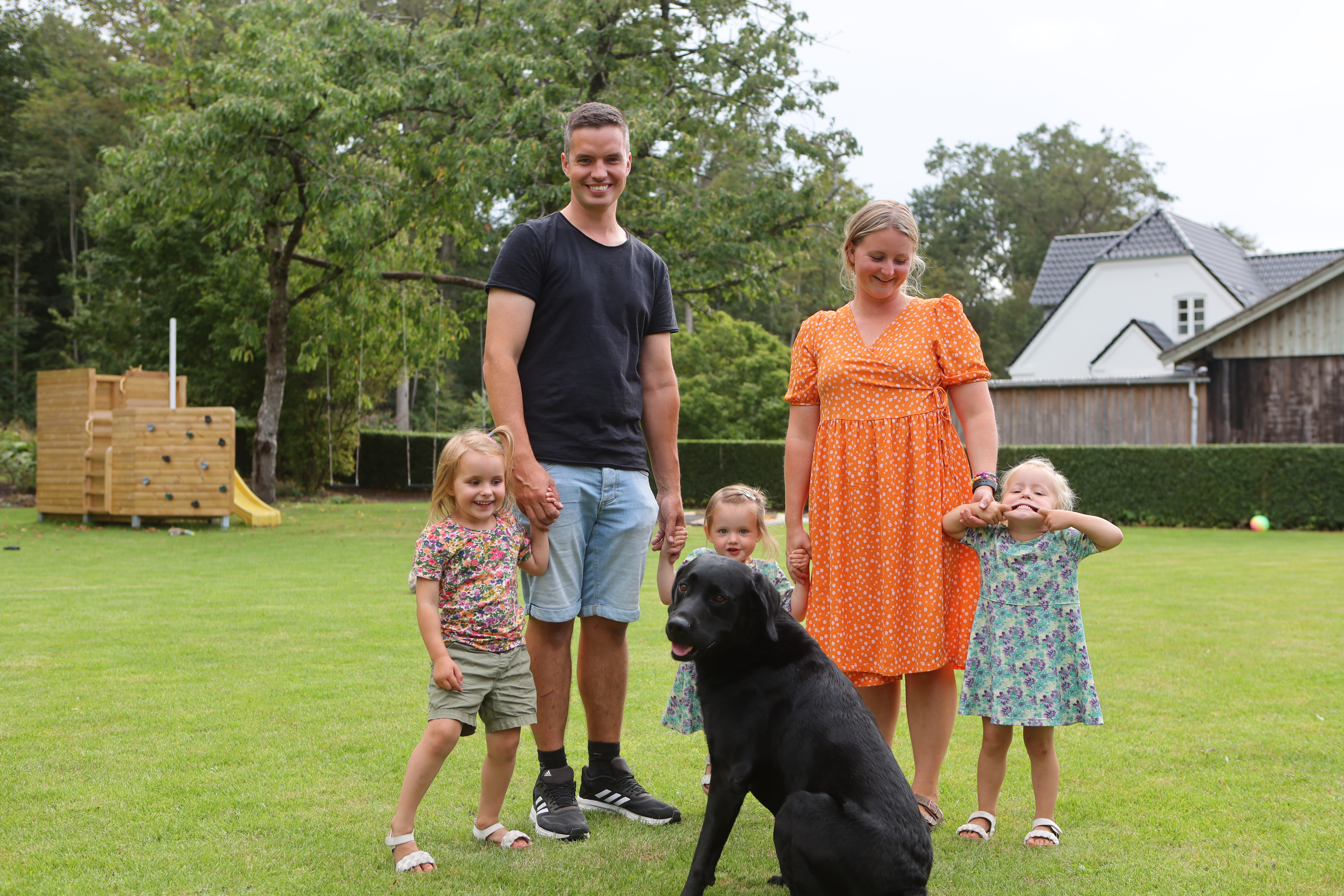 Jacob og Trine er begge oprindeligt fra Nordfyn og flyttede i 2016 sammen i Bogense. I 2018 købte de deres drømmehus i byen med Fredskoven lige i baghaven. Siden er familien vokset, og i dag har parret tre piger og en hund.